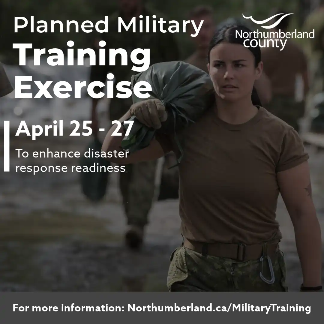 Northumberland County has been working closely with military planners and local municipalities for nearly a year to ensure the exercise is carried out safely and with minimal disruption to residents. Areas around training locations will remain accessible. Residents are asked to use extra caution near military vehicles and personnel and are thanked in advance for their understanding and cooperation.